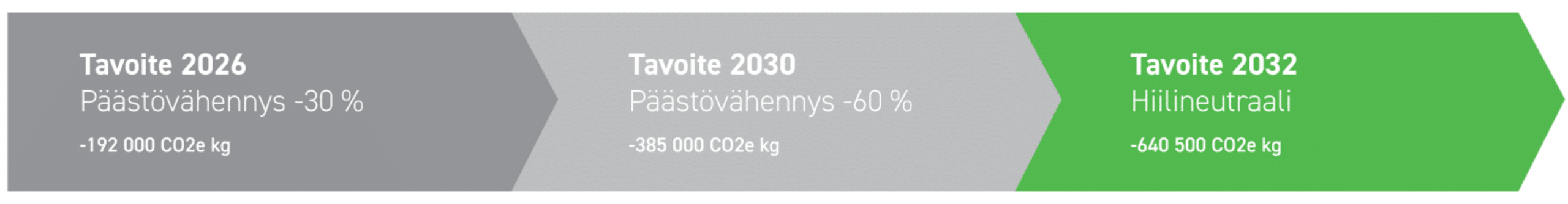 Vuoden 2026 tavoitteenamme on 30 % päästövähennykset nykytasosta.